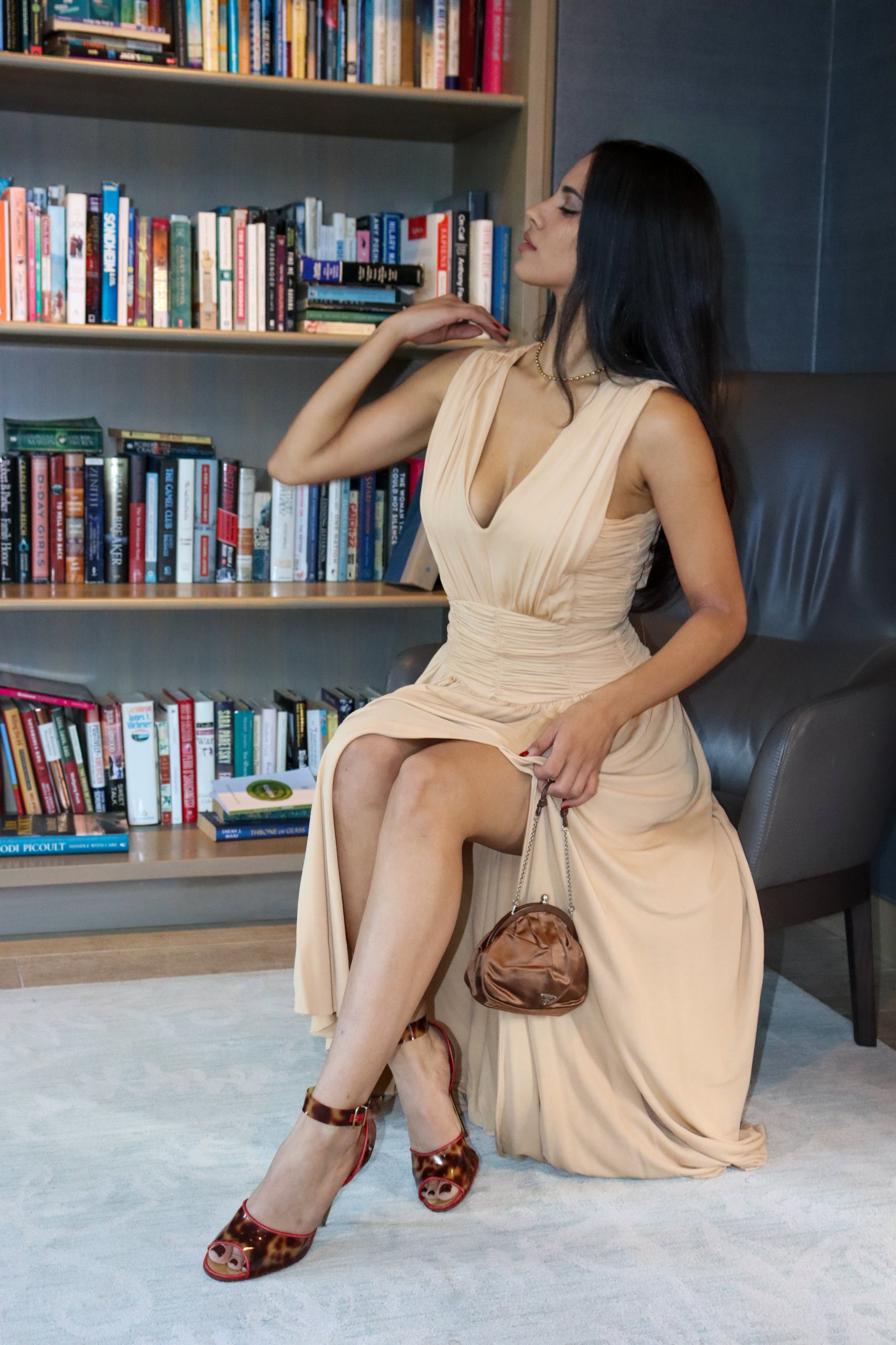 – Gold back zipper closure