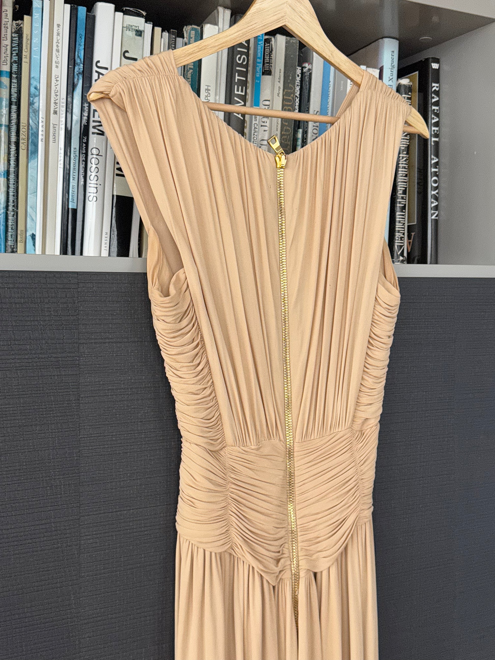 Balmain Couture Beige Ruched Gown