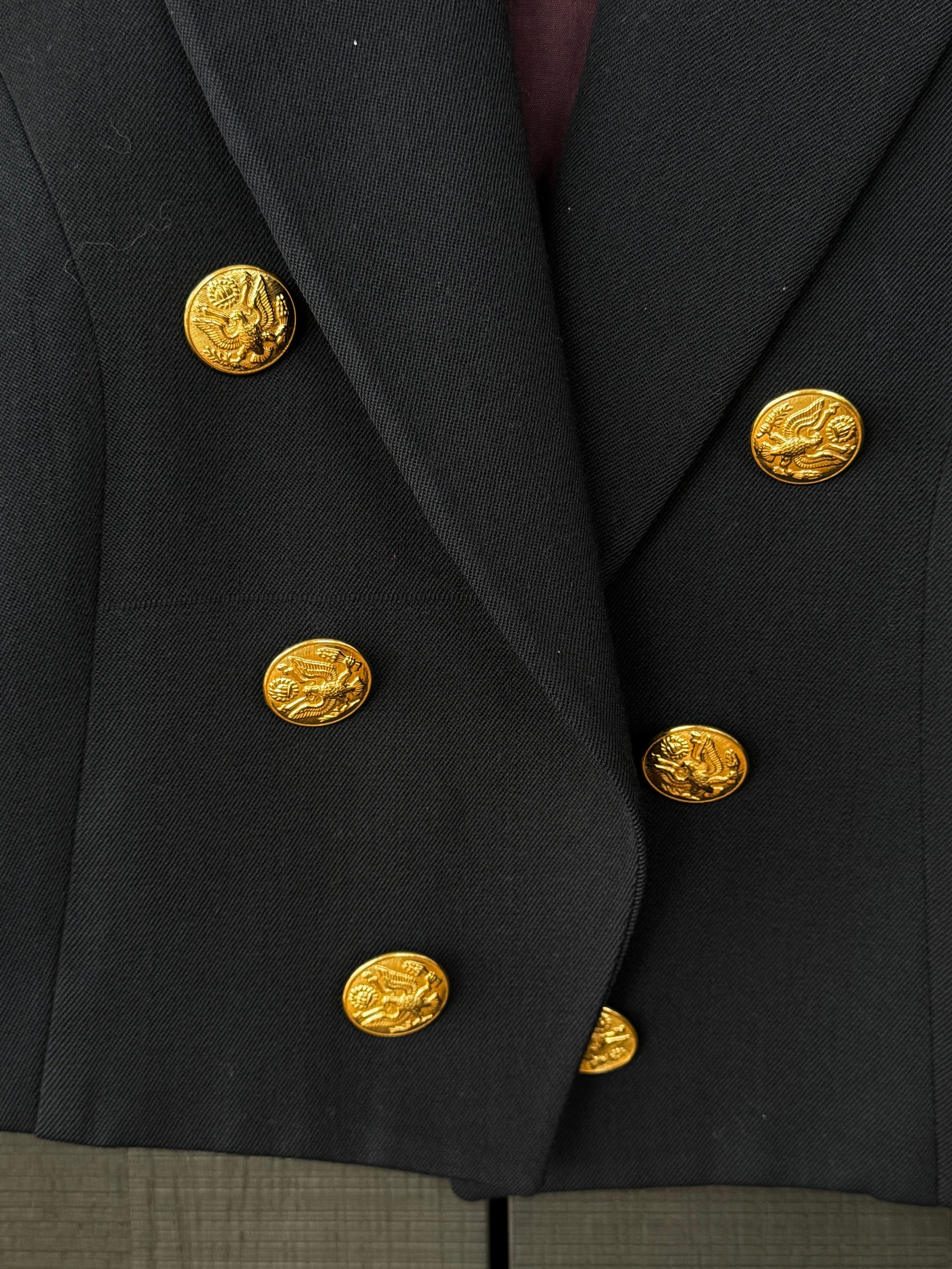 The sleeves are finished with gold military-style stripe detailing, adding authentic uniform-inspired sophistication.