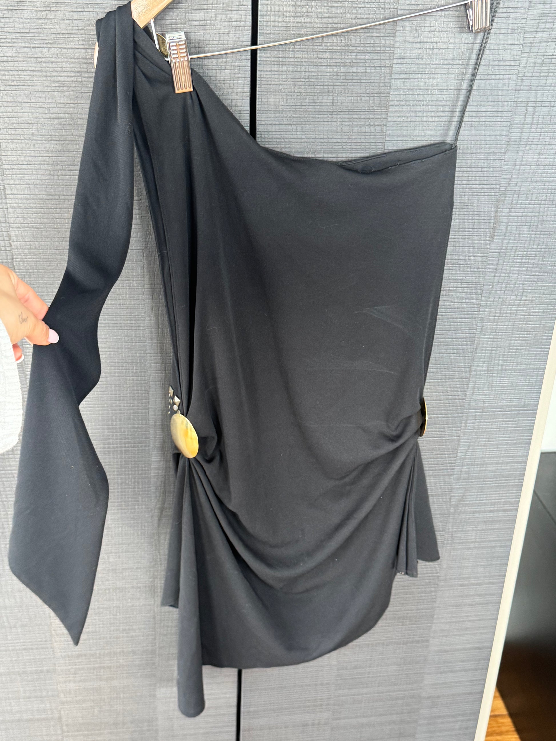 - Black silk draped asymmetric dress/top