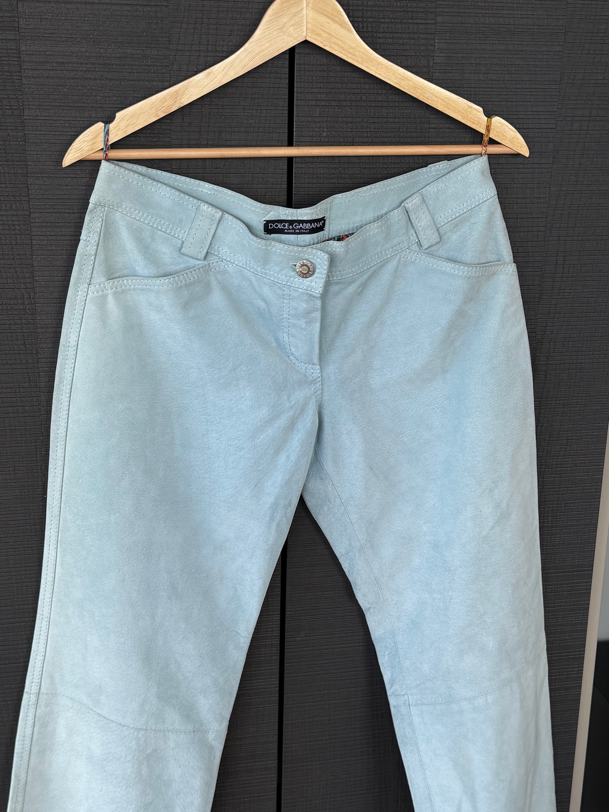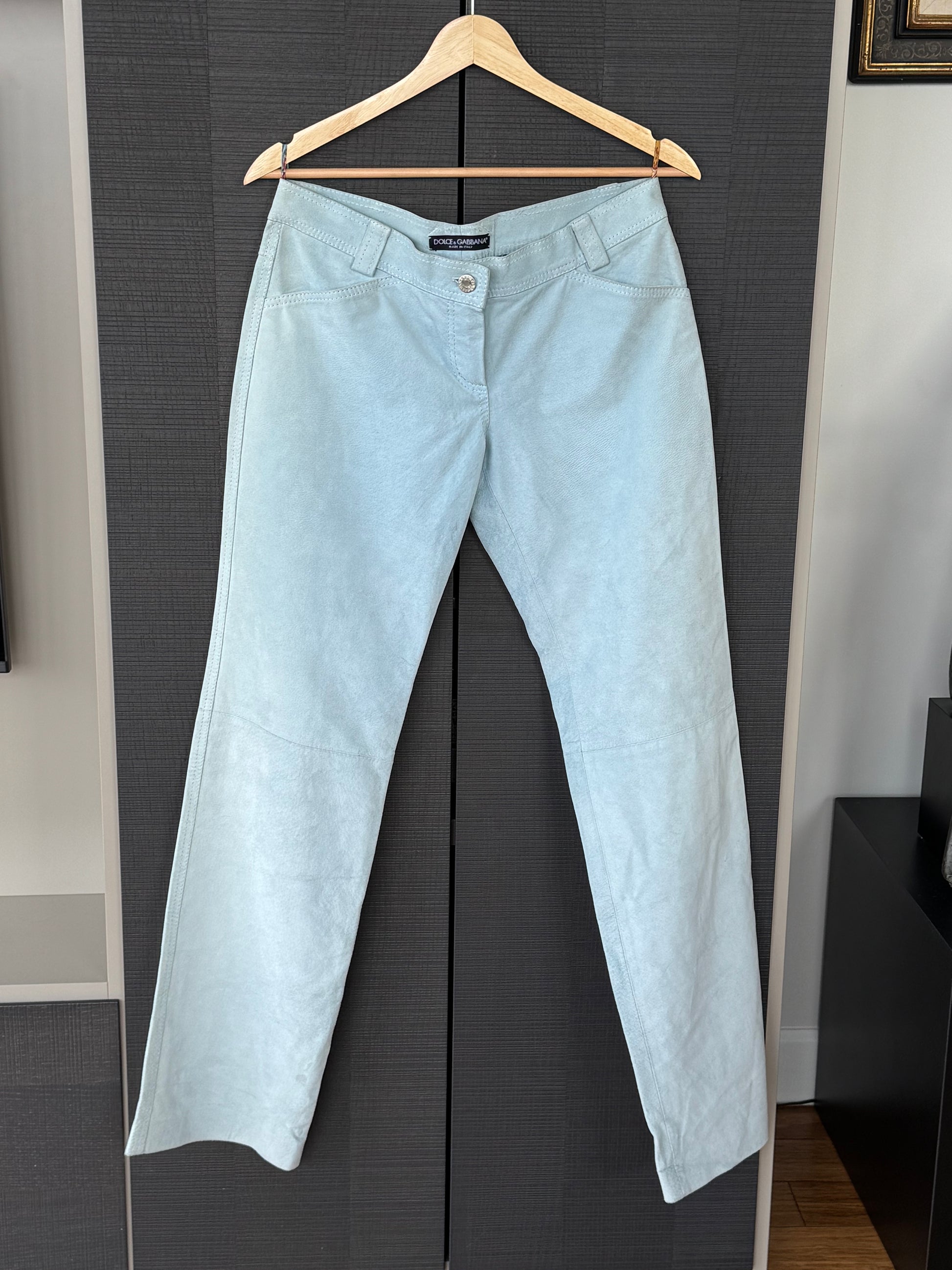 Vintage Dolce & Gabbana Baby Blue Suede Leather Pants