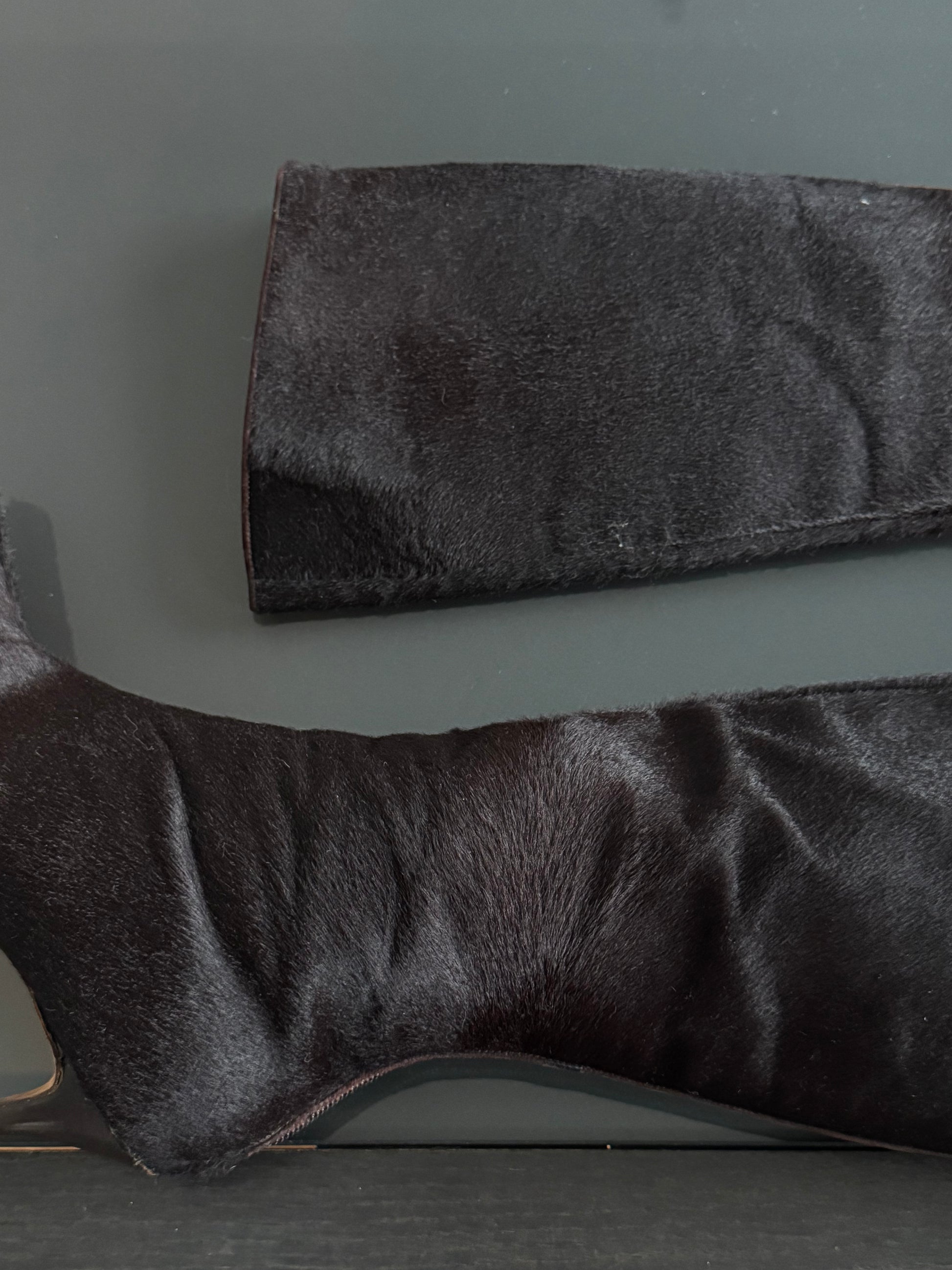 Manolo Blahnik very dark brown calf hair pointed toe boots.