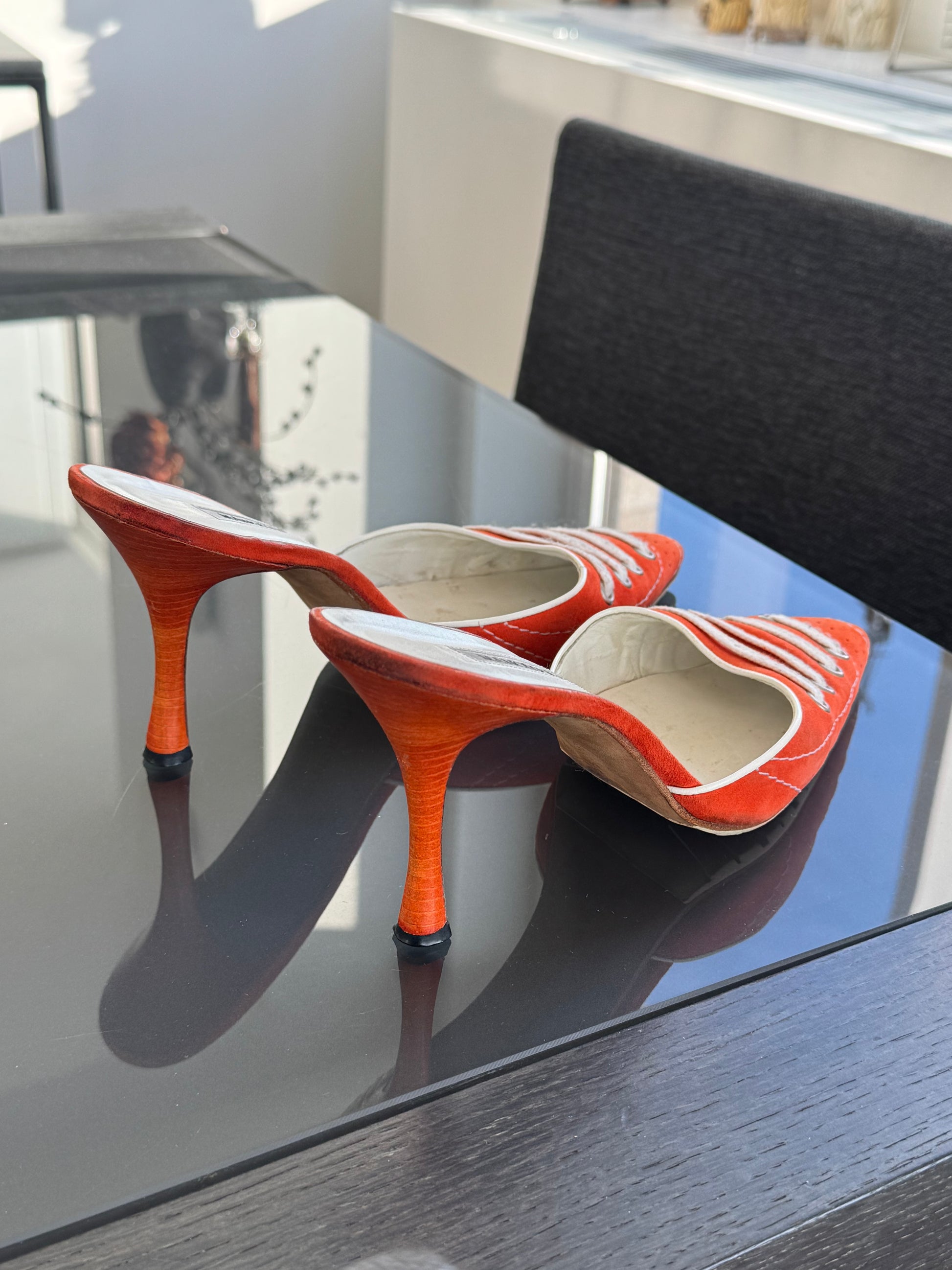 Manolo Blahnik Orange Lace-Up Heels (As Seen in SATC) 39