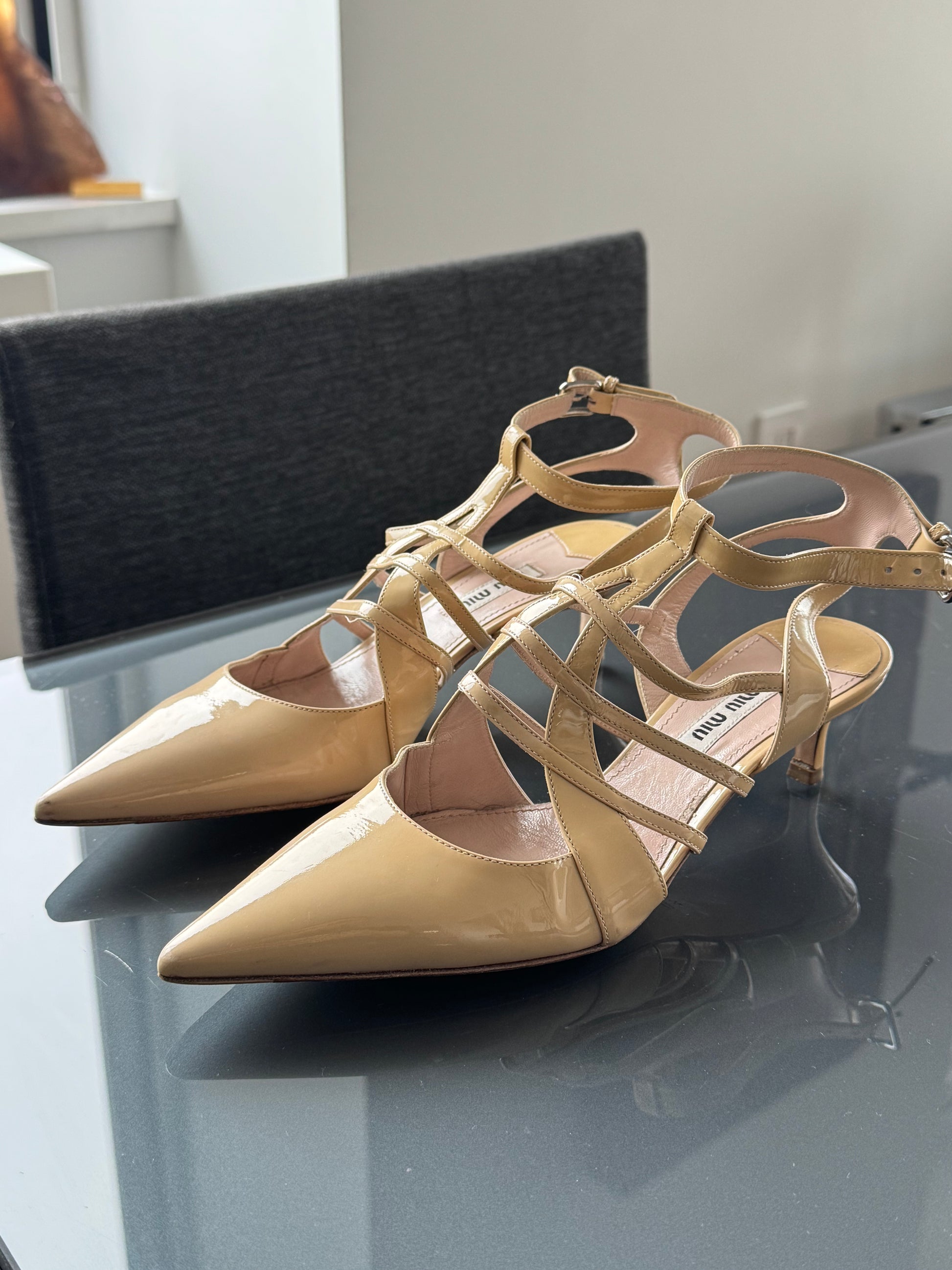 Vintage Miu Miu Nude Patent Strappy Heels 37.5